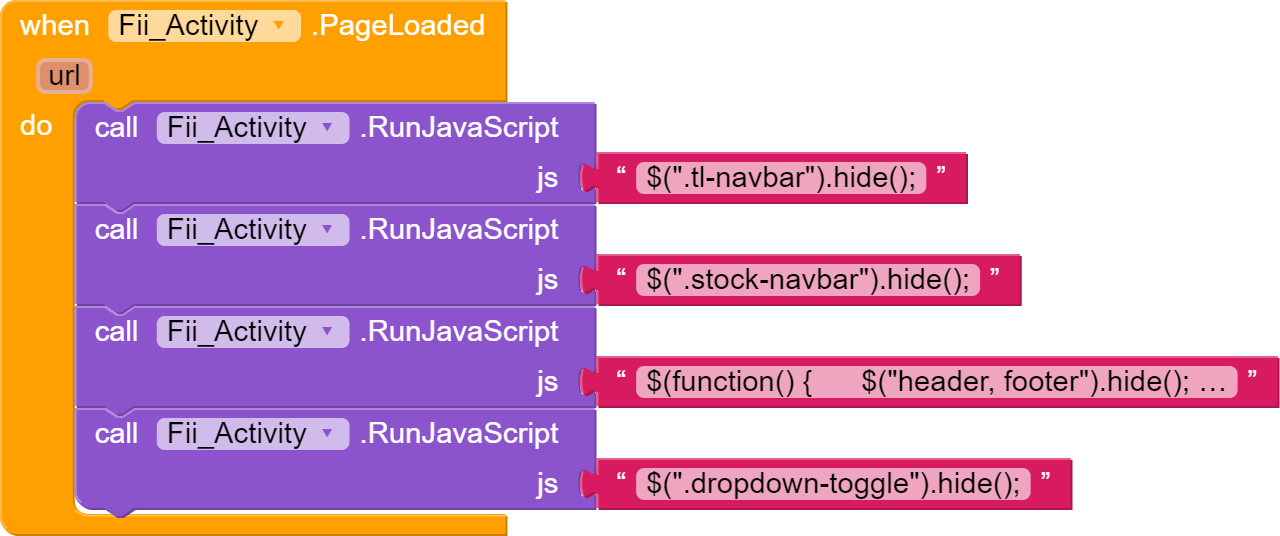 :- WebViewClient, & document.getElementsByClassName ('header ')[0] .style.display=‘none’